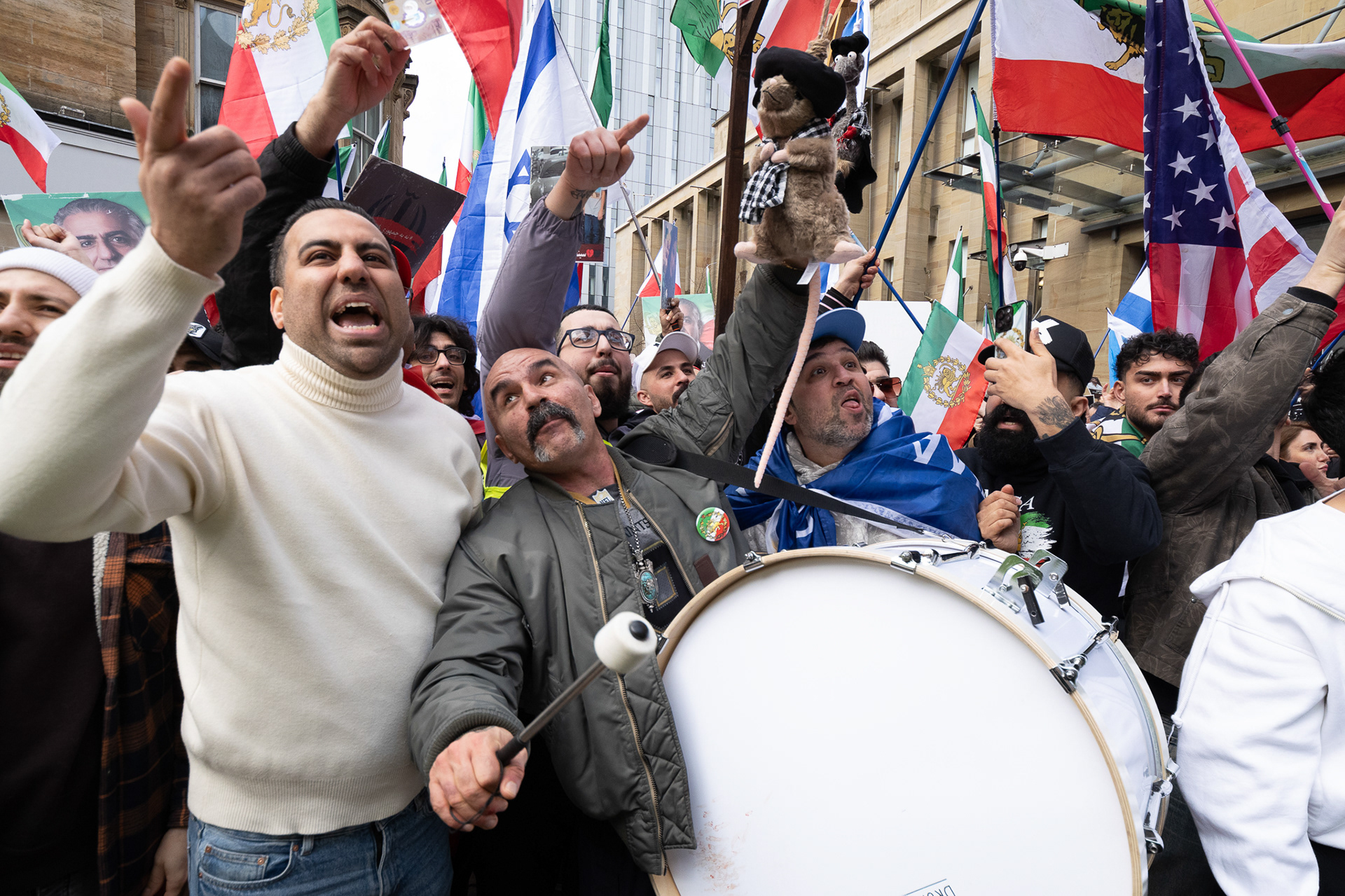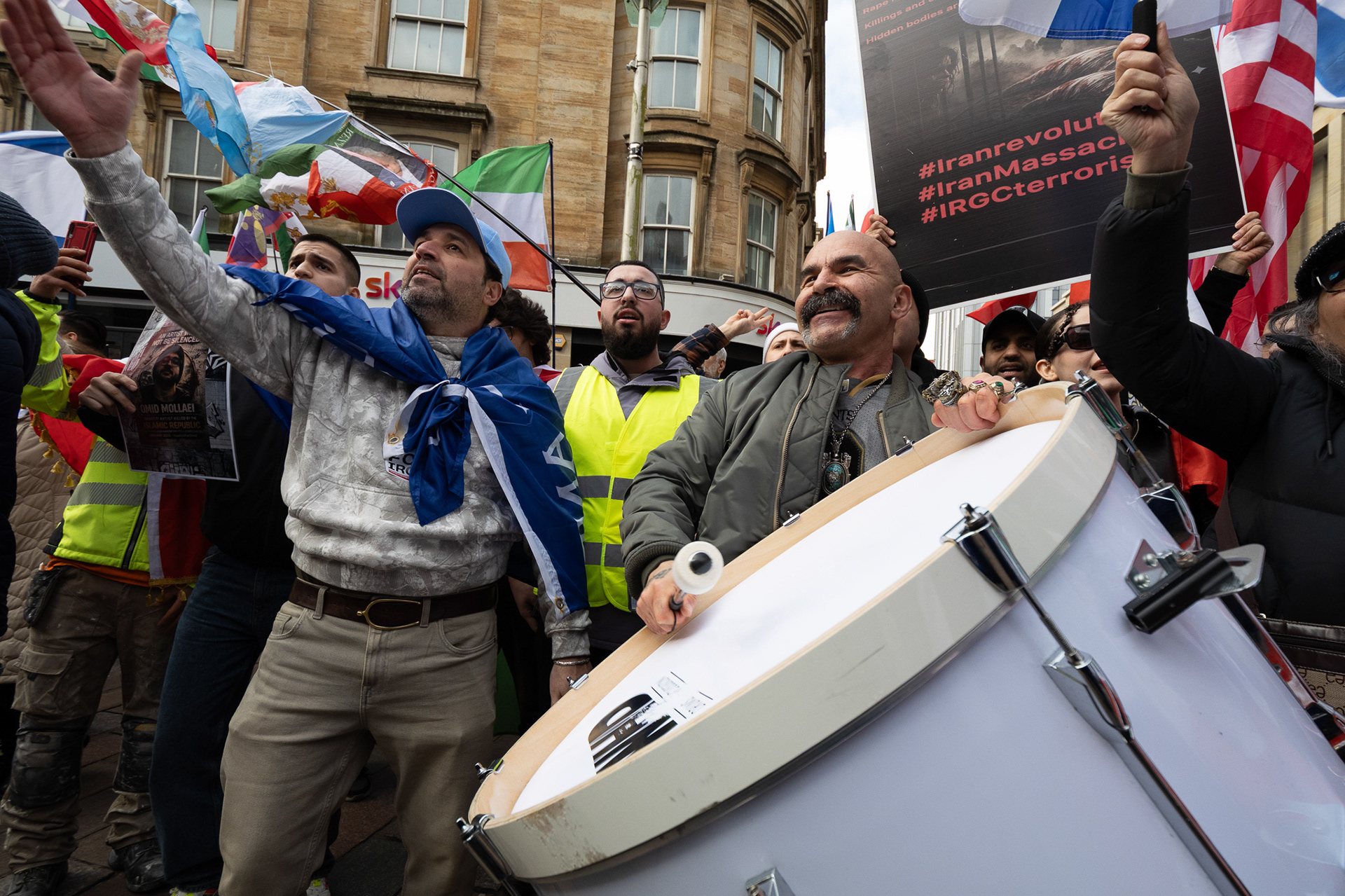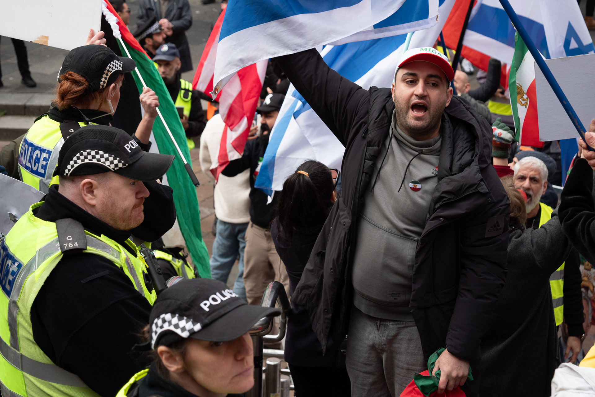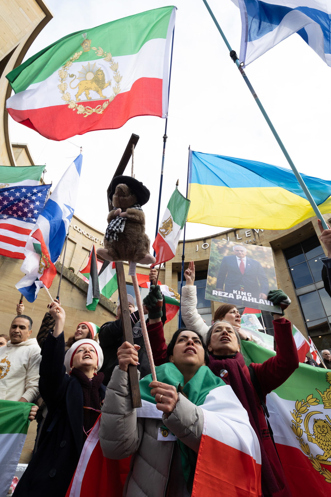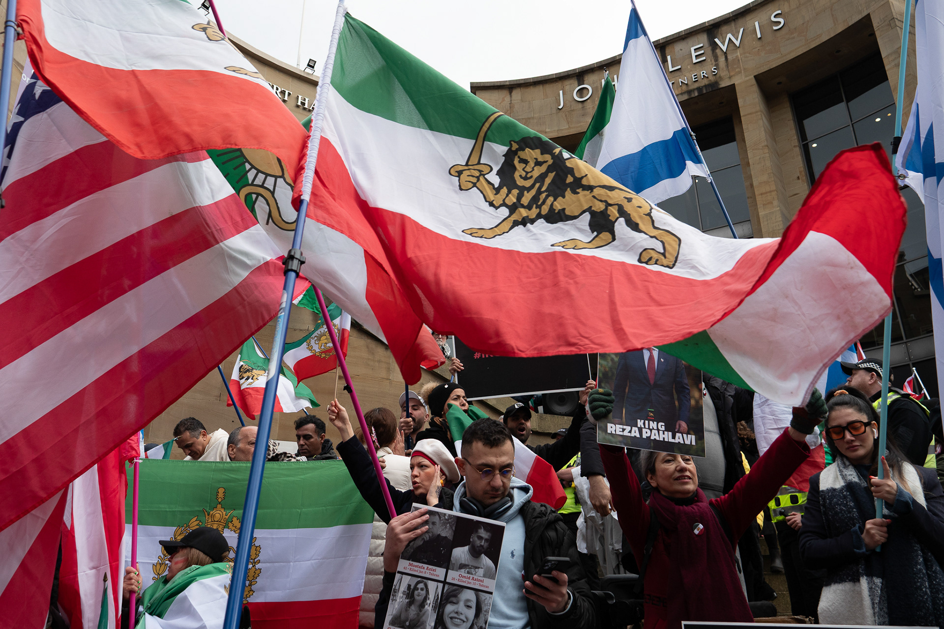28th Feb 2026 - Members of Scotlands Iranian community, who in recent weeks have been calling for support from the United States and Israel for regime change, held a demonstration in Glasgow as hundreds gathered following news of recent attacks on Iran. The protest was met by a counter-demonstration from pro-Palestinian activists opposing U.S. and Israeli actions.