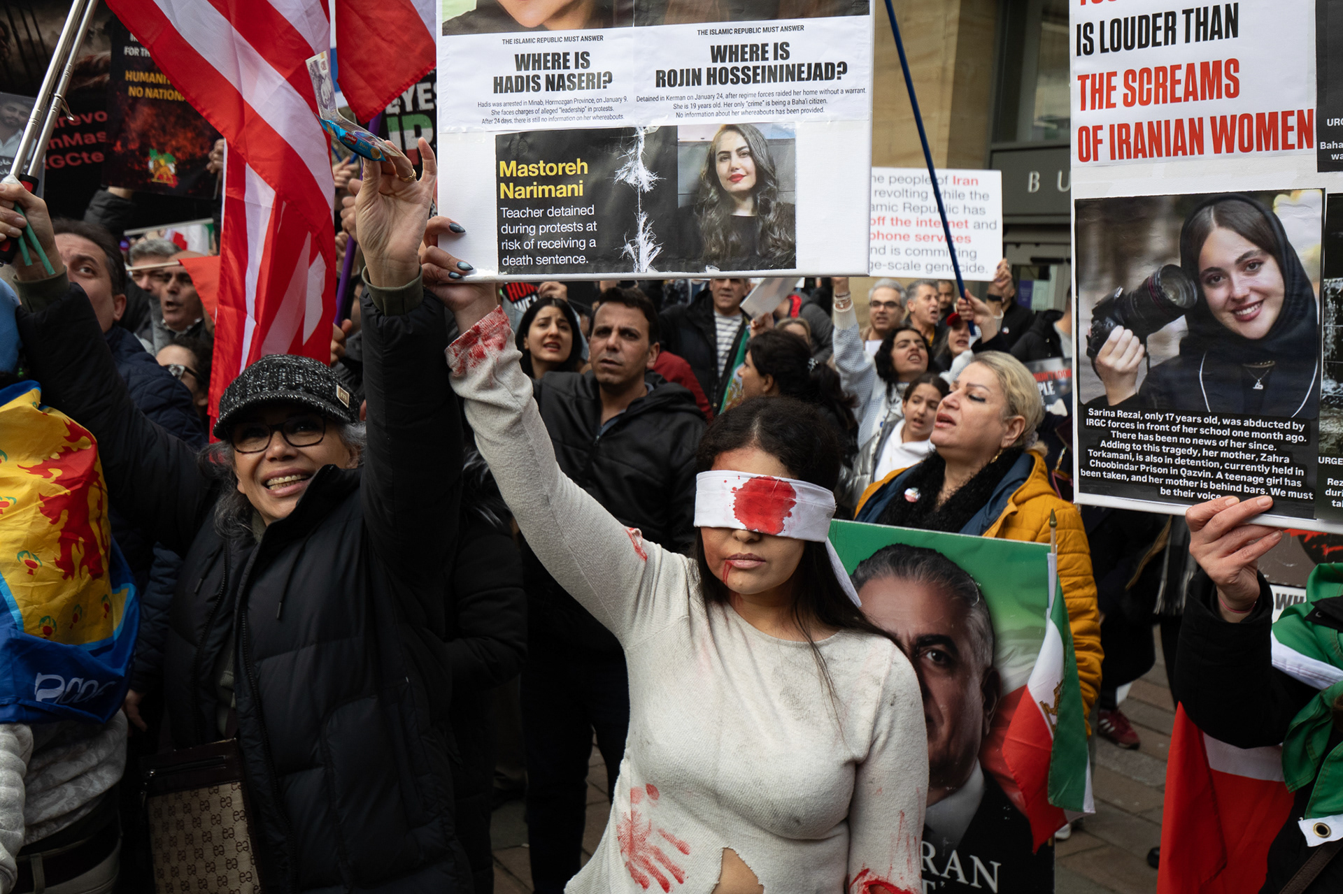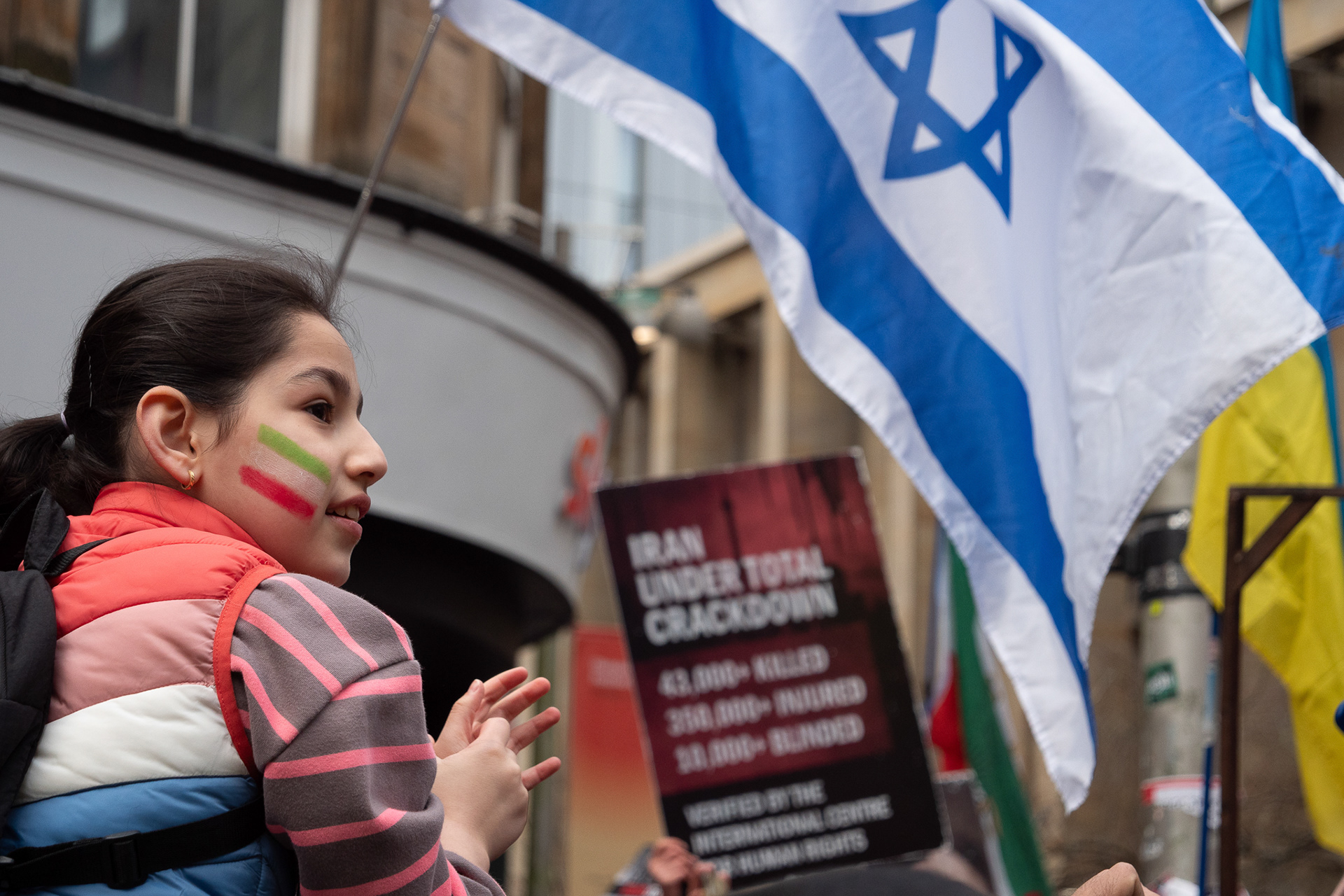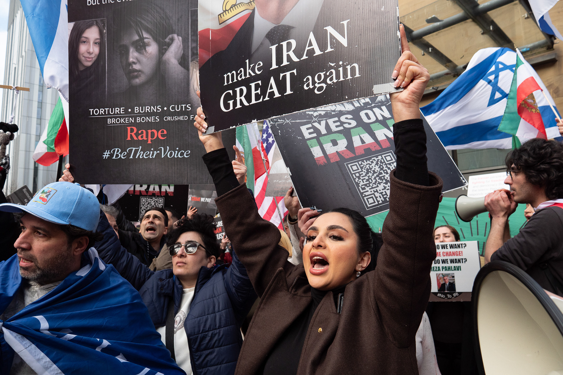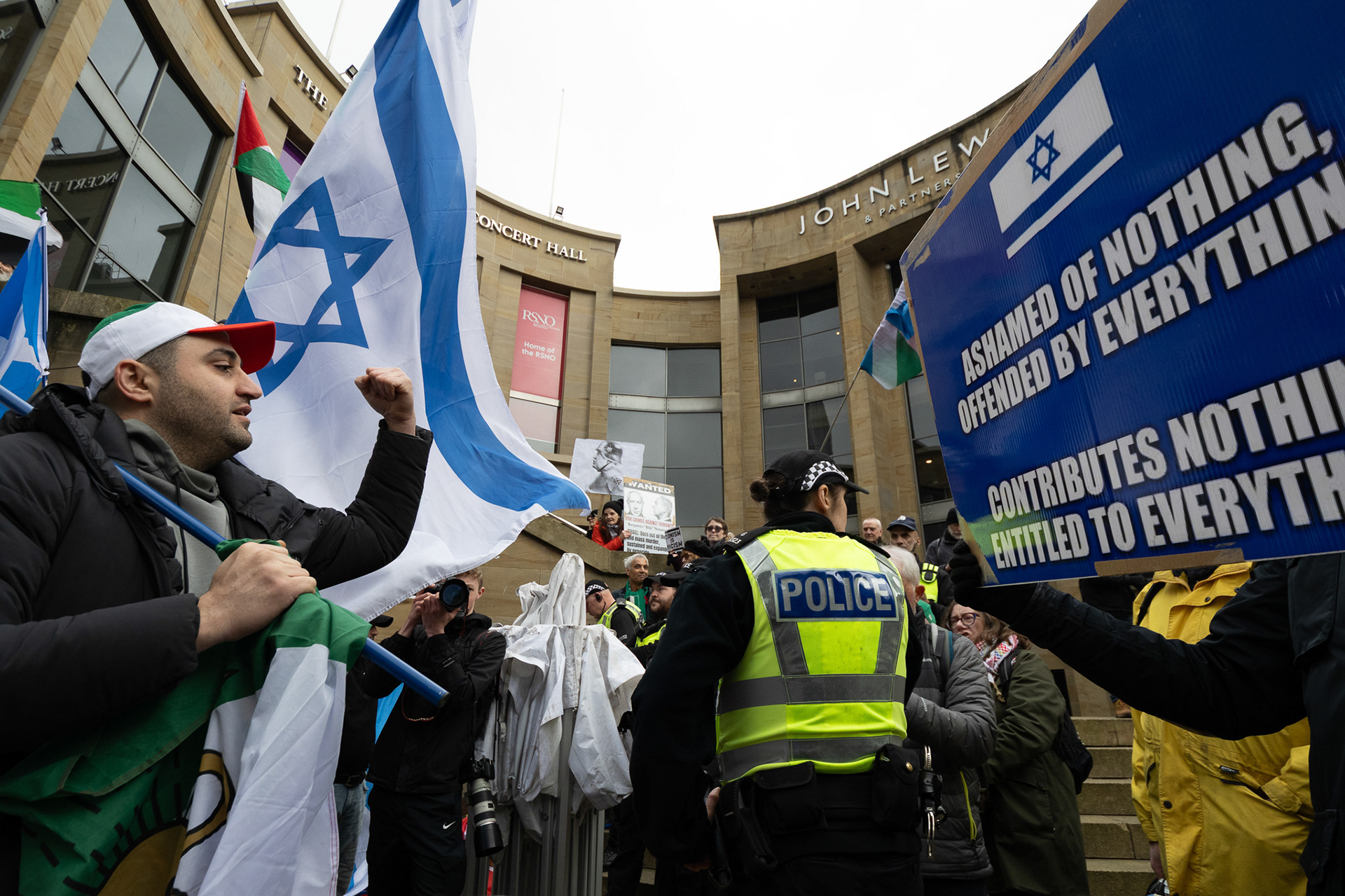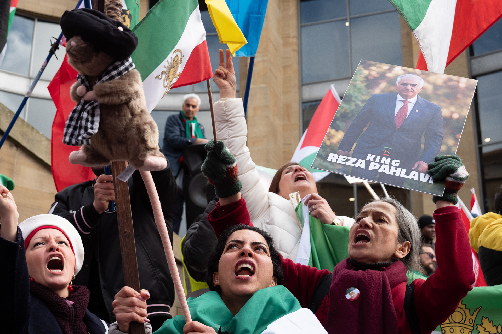28th Feb 2026 - Members of Scotlands Iranian community, who in recent weeks have been calling for support from the United States and Israel for regime change, held a demonstration in Glasgow as hundreds gathered following news of recent attacks on Iran. The protest was met by a counter-demonstration from pro-Palestinian activists opposing U.S. and Israeli actions.