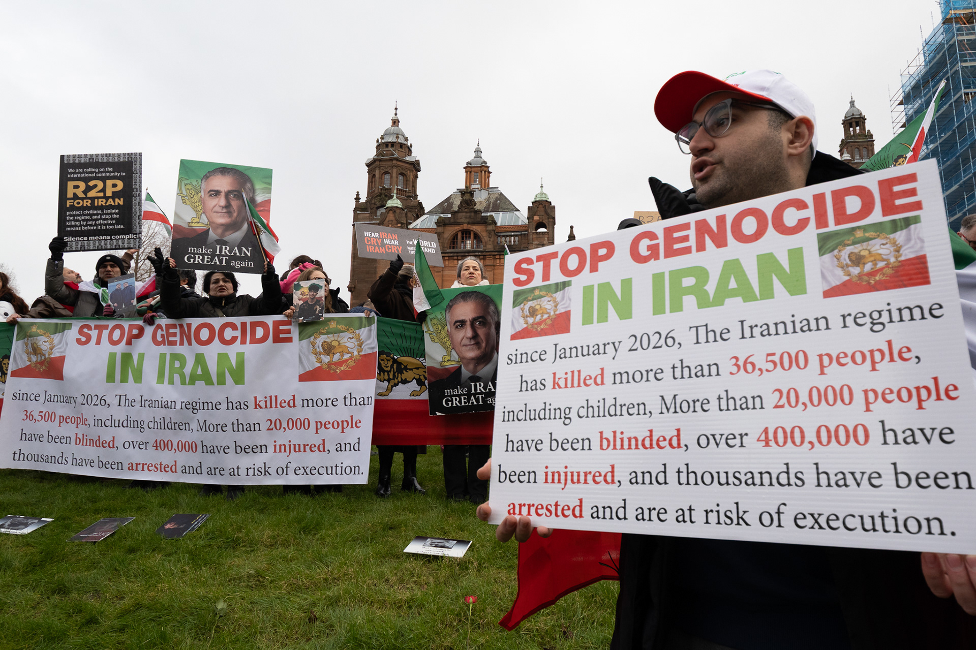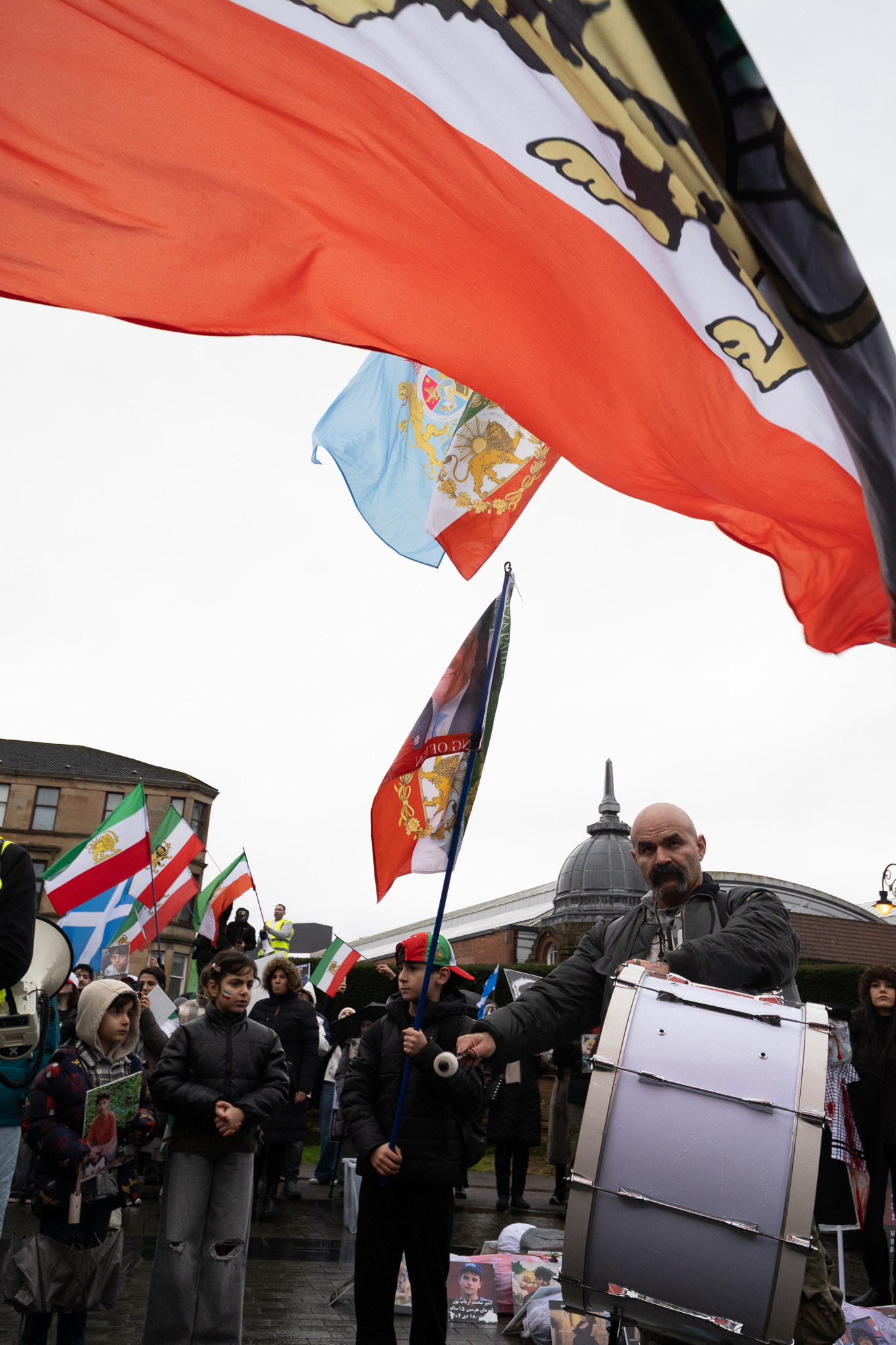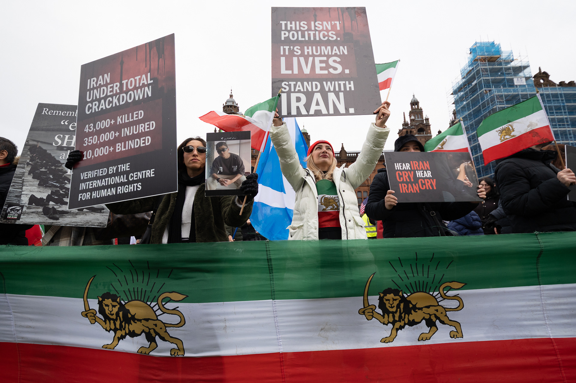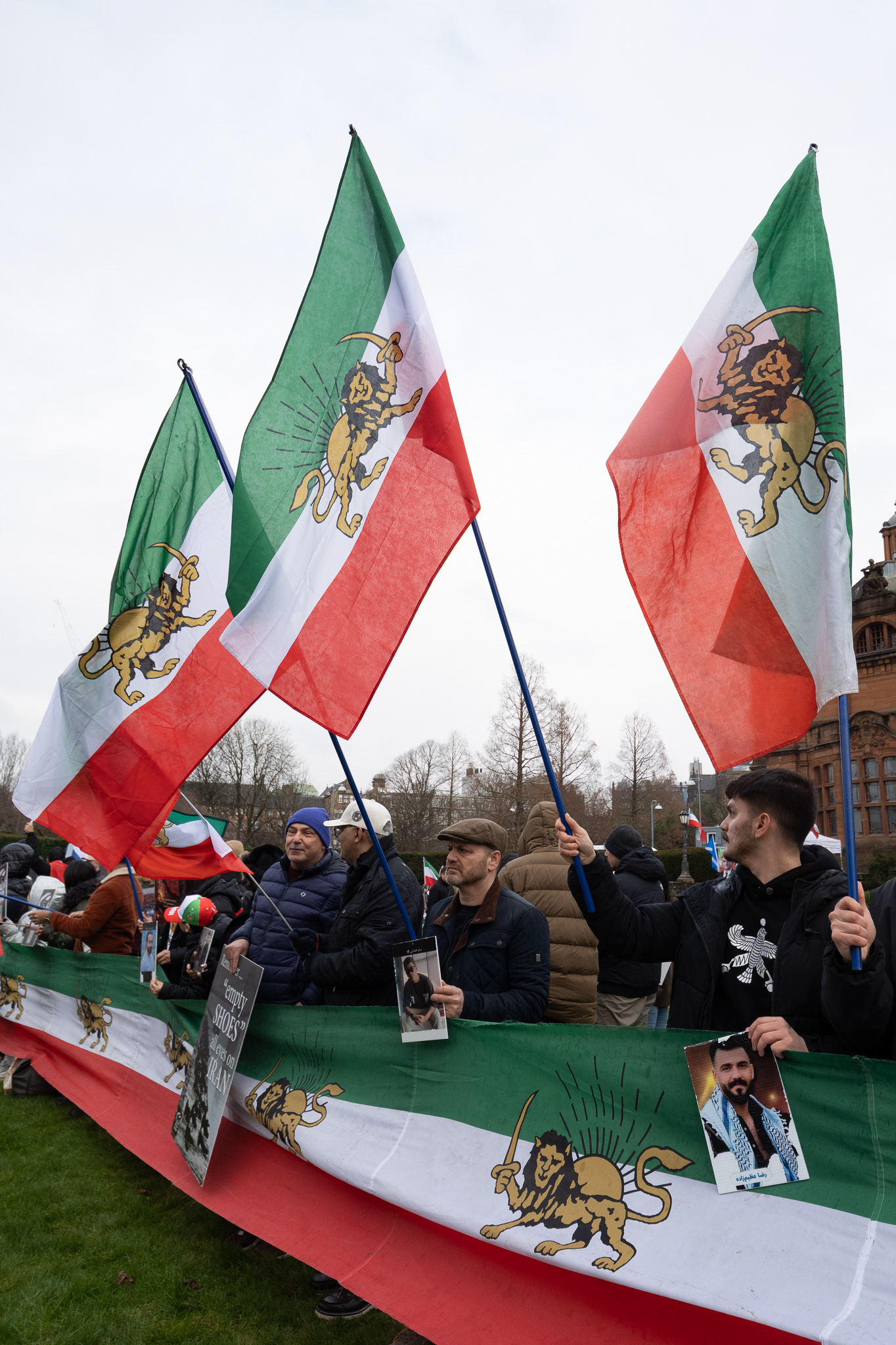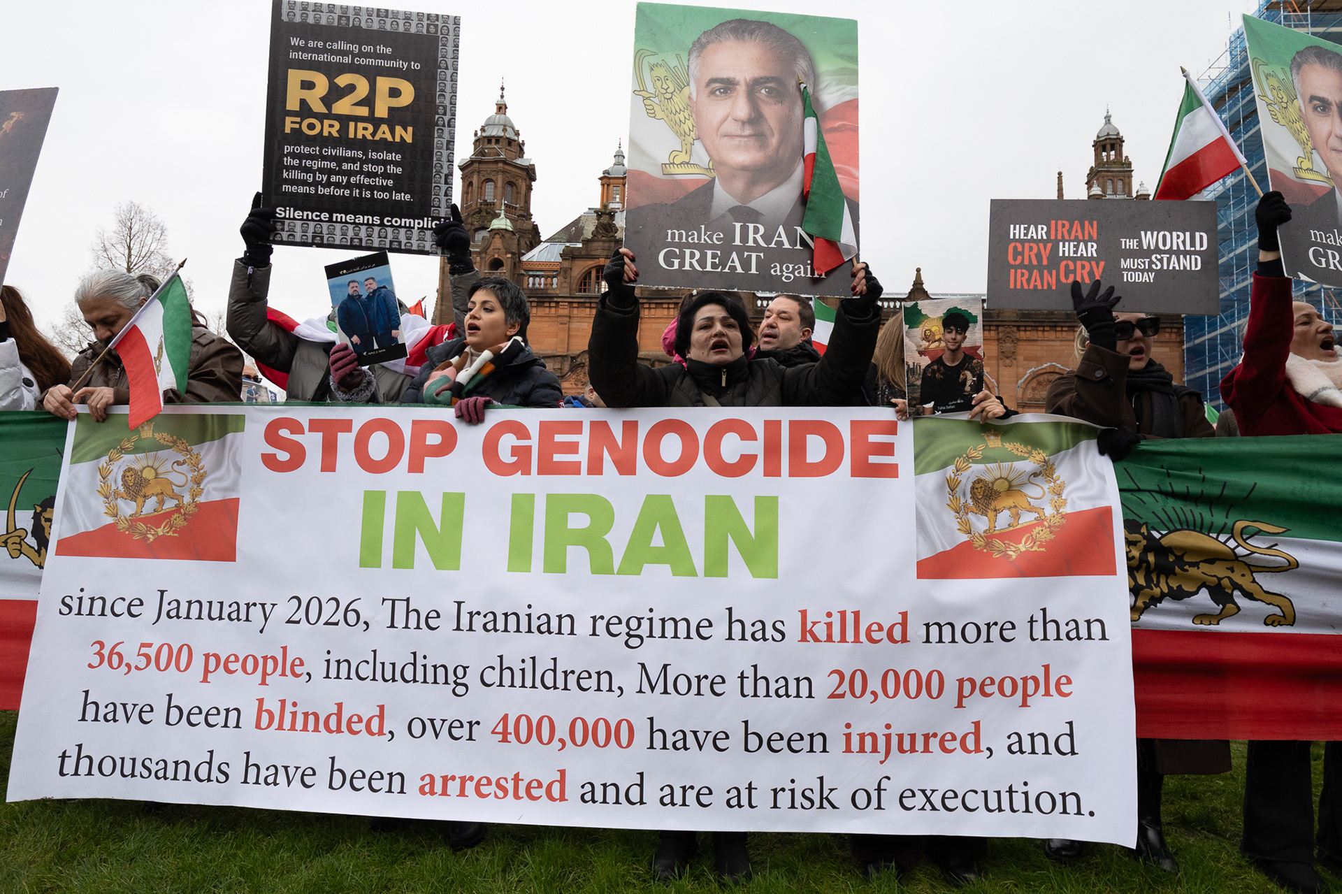 31st January 2026 - Activists and members of Scotland's Iranian community held a demonstration in Glasgow in support of protesters in Iran. Hundreds gathered outside the Kelvingrove Art Gallery, calling for recognition of the right to peaceful protest and international backing for a democratic transition.