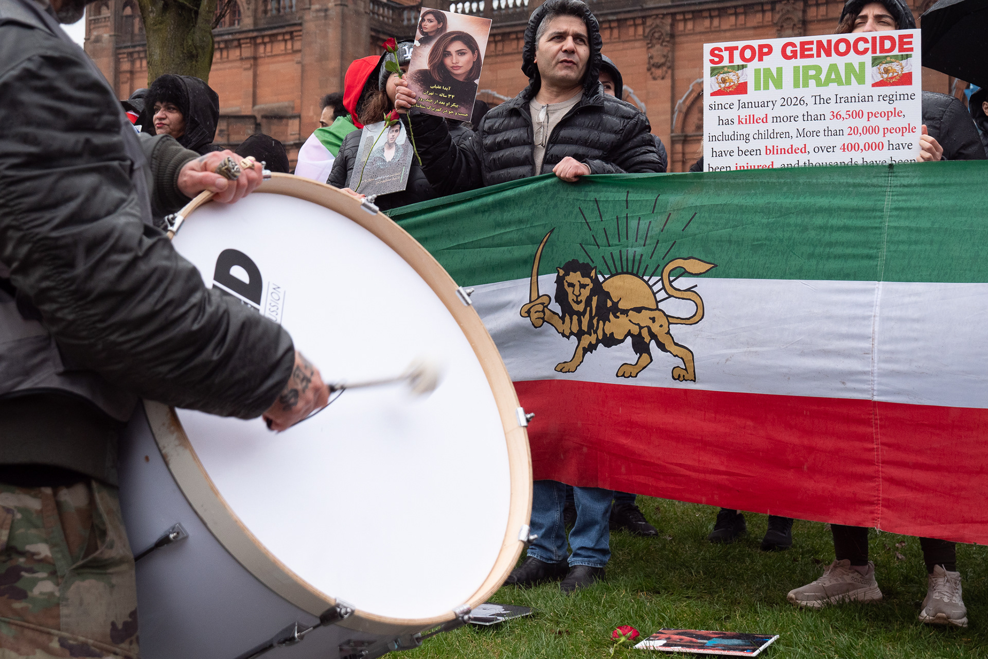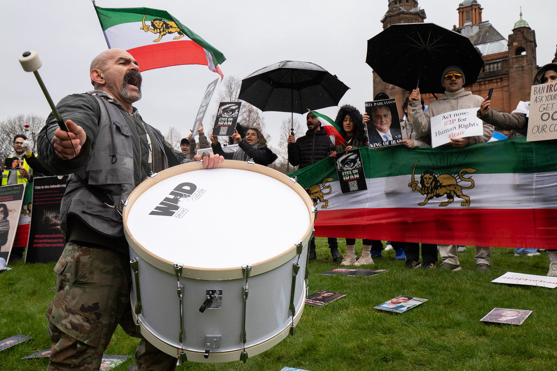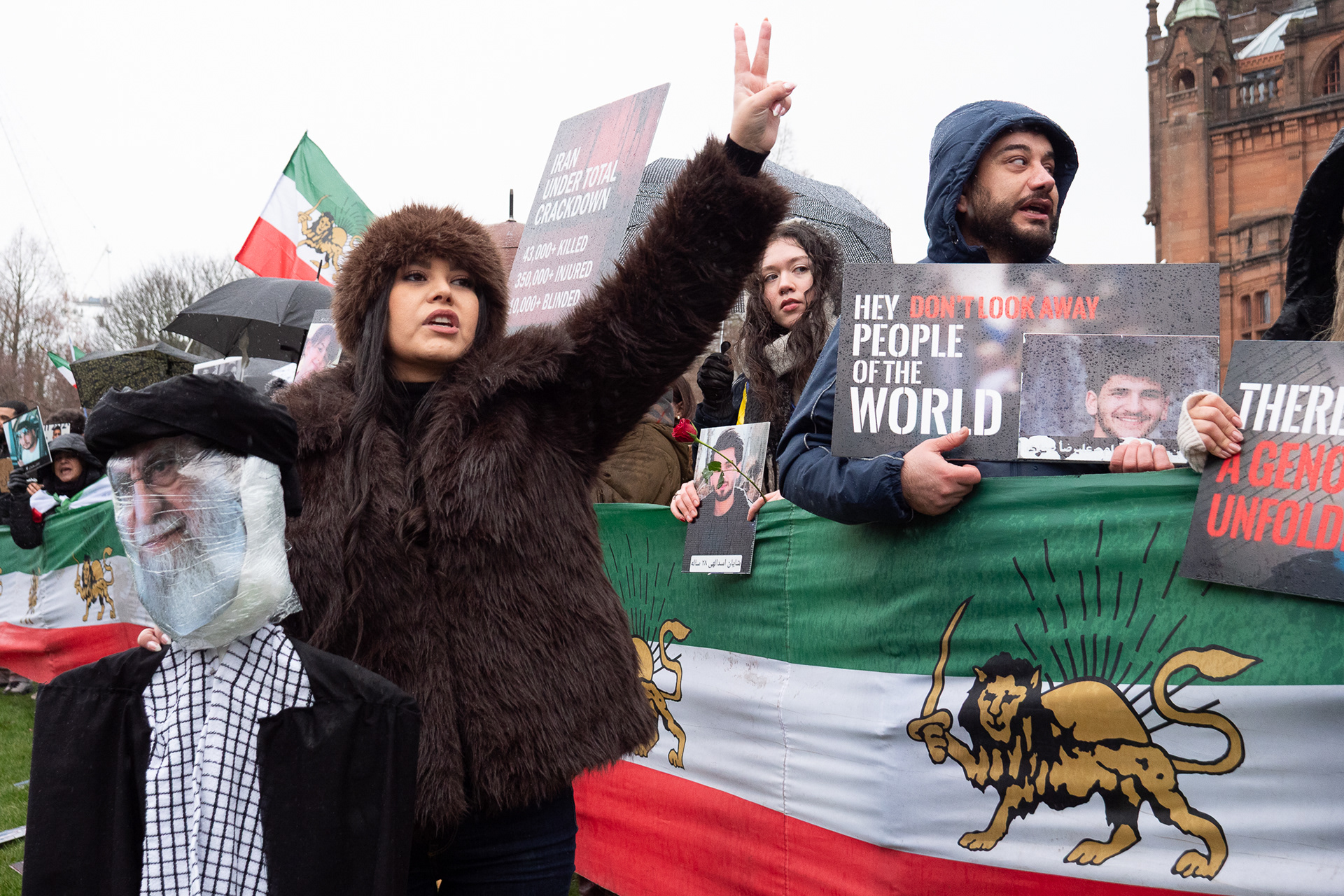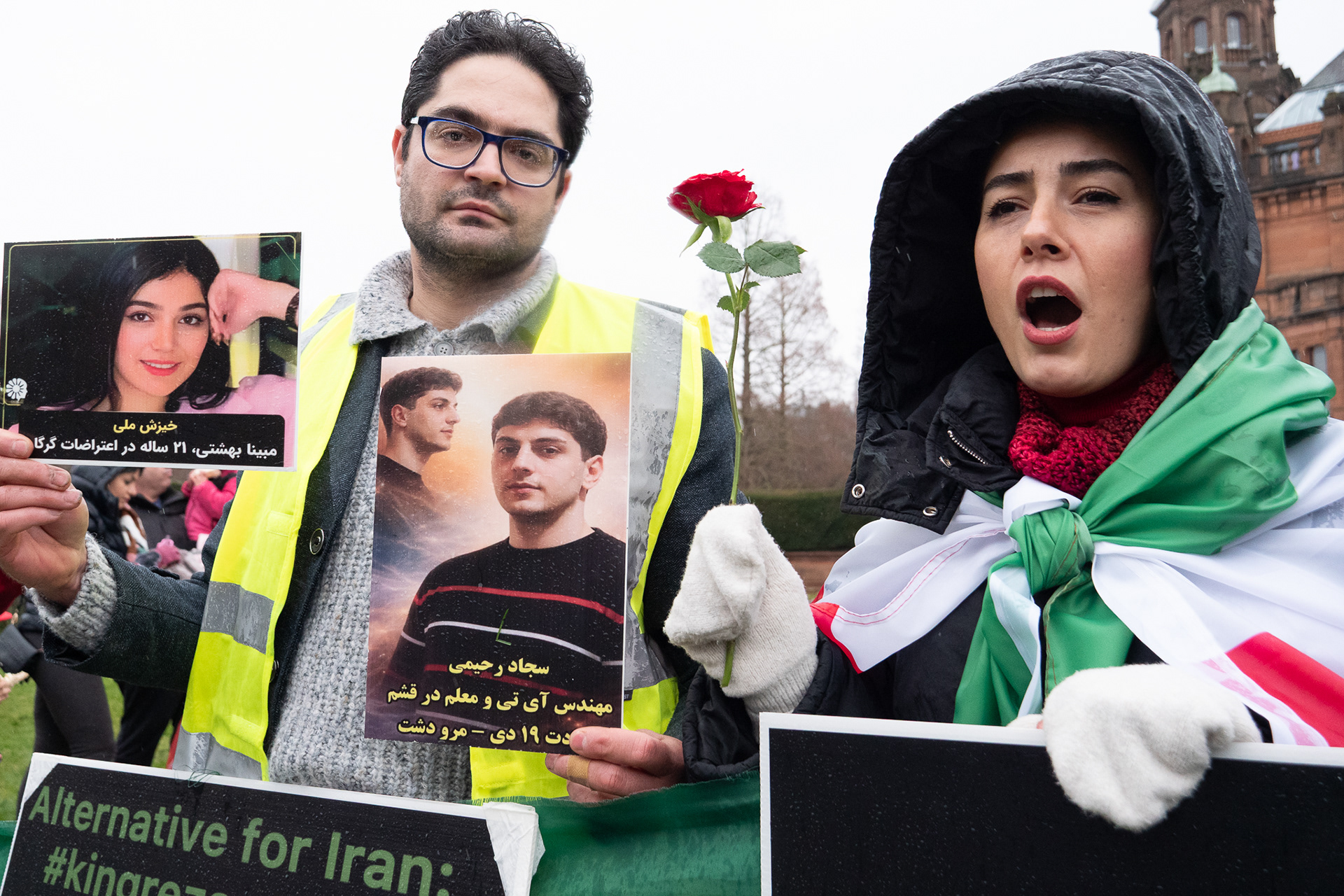 31st January 2026 - Activists and members of Scotland's Iranian community held a demonstration in Glasgow in support of protesters in Iran. Hundreds gathered outside the Kelvingrove Art Gallery, calling for recognition of the right to peaceful protest and international backing for a democratic transition.