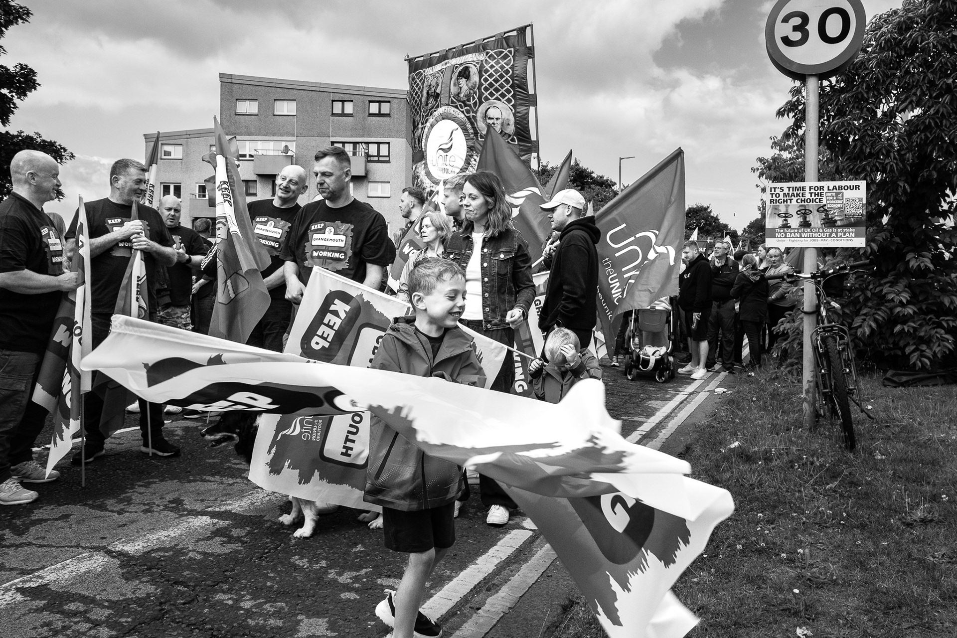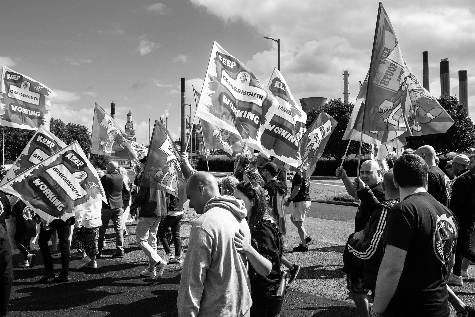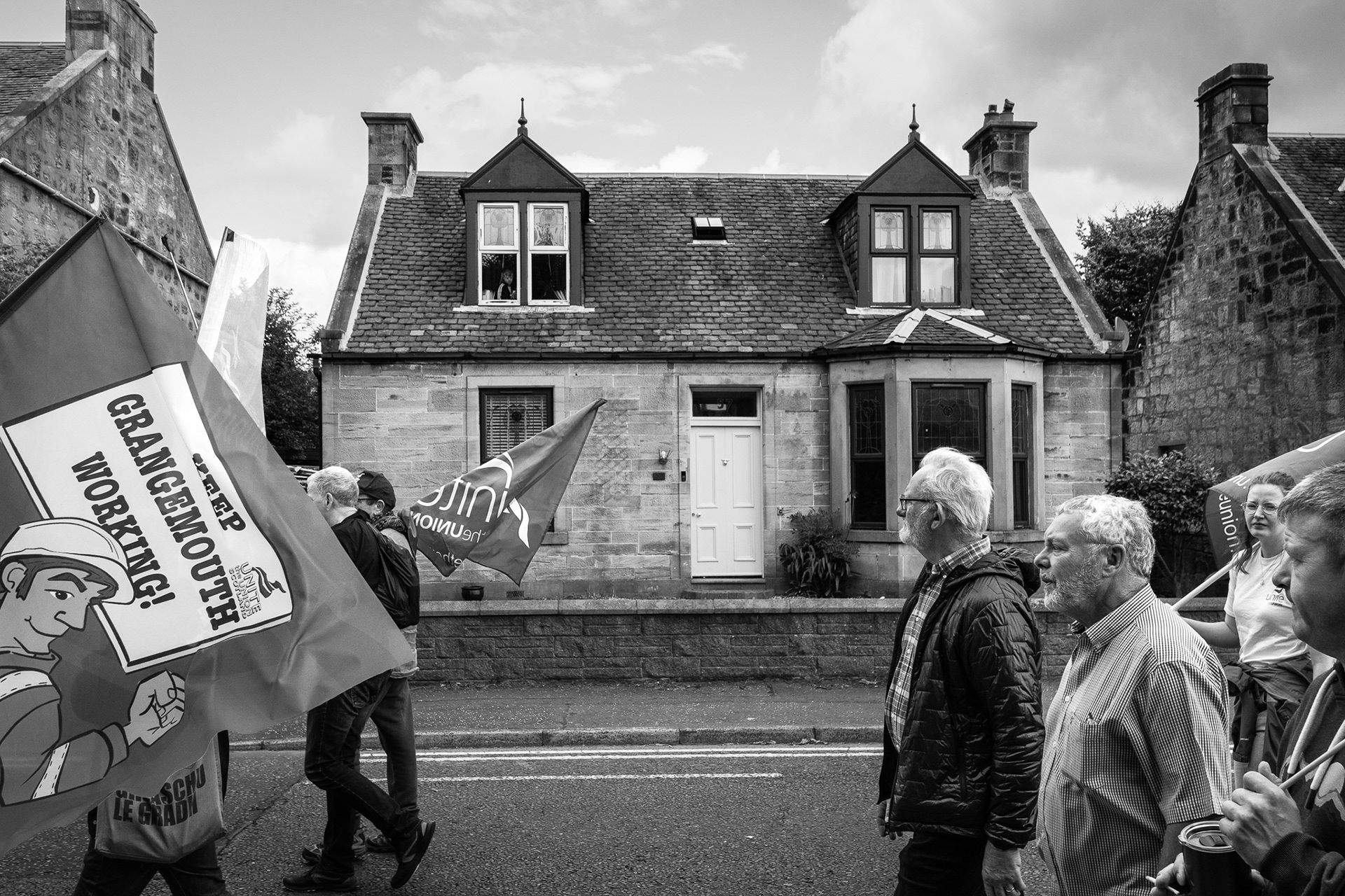 3rd August 2024 - The Keep Grangemouth Working campaign group held a protest that was supported by workers, community members and trade unionists who marched in support of five hundred refinery workers and the thousands more dependent upon it that would be lost if proposed plans to close Scotland's only oil refinery went ahead. This came on the back of an announcement by the refinery owners, Petroineos, to transition the refinery operations to an import and export oil terminal facility.